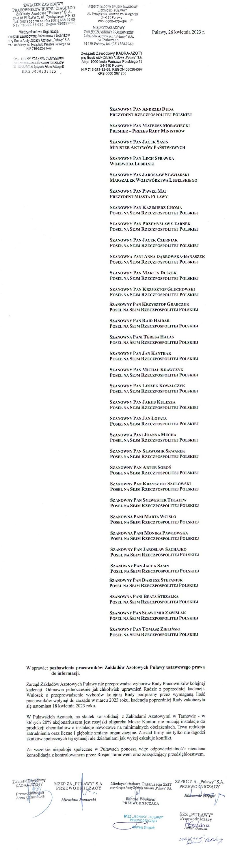 W OBRONIE ZAKŁADÓW AZOTOWYCH PUŁAWY i NASZYCH MIEJSC PRACY,